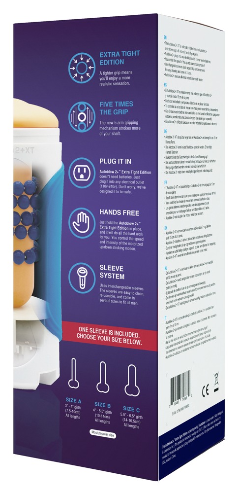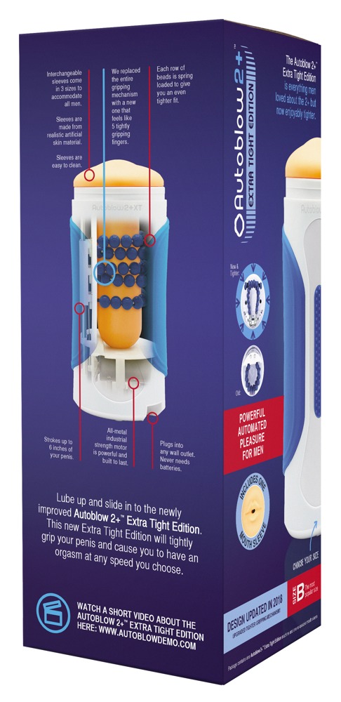 Vill du kunna luta dig tillbaka och få känslan av en avsugning? Då är Autoblow 2+ XT perfekt för dig. Koppla endast in kabeln i väggen och du är redo för att kunna sätta dig ner och njuta. Denna leksak har en kraftig och intensiv motor som kommer hjälpa dig att uppnå fantastiska orgasmer men även en underbar känsla vid användning. Den har en extra tight öppning som tillför en extra skön känsla vid användning. Den har dessutom sugande och roternade funktioner. Utöver dem grymma funktionerna så är den dessutom väldigt enkel att rengöra. Den är tillverkad i högkvalitativa material.