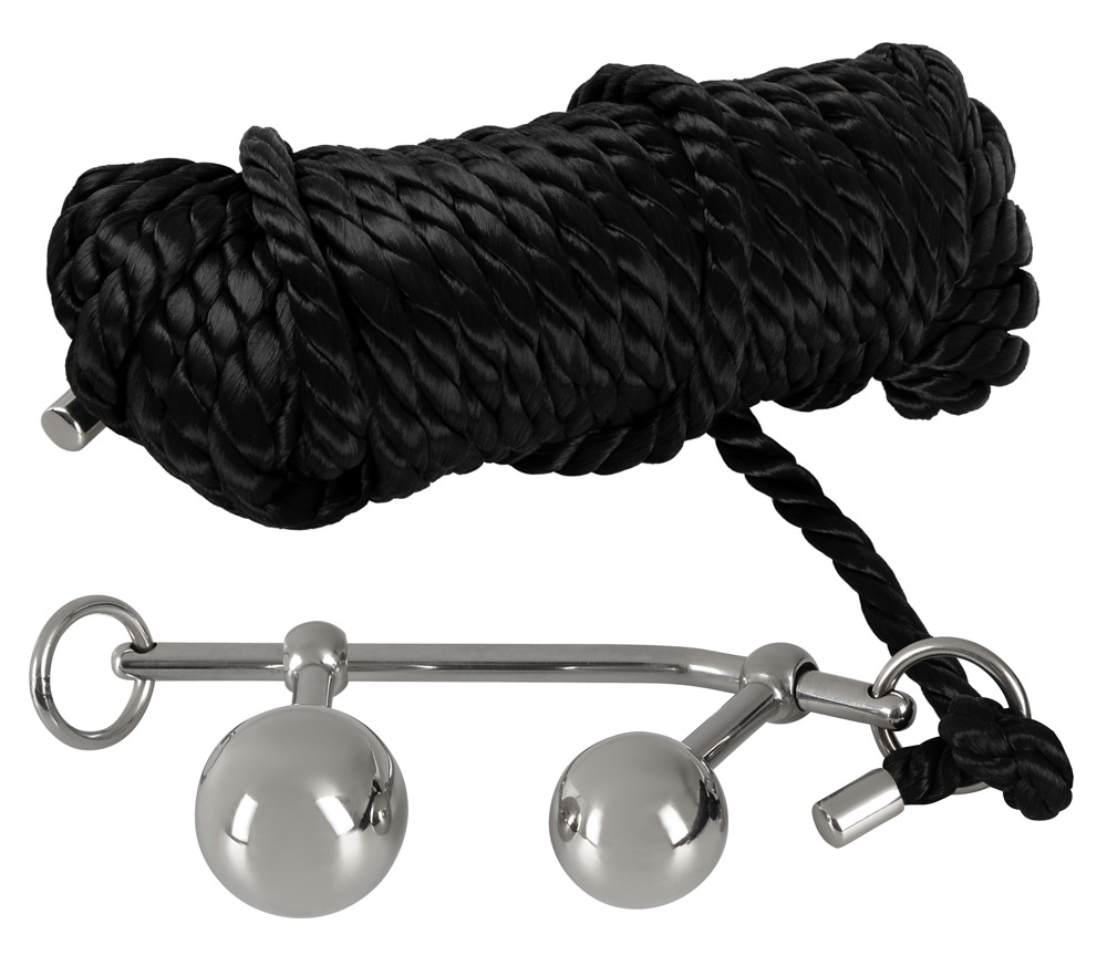Bondage Plugs with 10 m Rope är den perfekta plug and play leksaken för så väl nybörjaren som den mer erfarne. kombinera heta anal samt vaginala pluggar med erotisk ShiBari lek. De sexiga bondage pluggarna är fästa i ringar till en väldesignad stav i högkvalitativt stål vilket gör dem individuellt justerbara för ultimat komfort vid användning, de två kulorna även de framtagna i högkvalitativt stål kommer i olika storlekar och skruvas loss för att alterneras emellan samt underlätta rengöring. Se till att kulorna är väl fastskruvade vid stången innan införande, för in en kula i taget och reglera avståndet för maximal komfort innan införande av nästa kula, är kompatibel med det flesta av våra glidmedel. Dock rekommenderar vi alltid att du använder dig av ett vattenbaserat glidmedel för att undvika onödigt slitage samt för att underlätta införandet. när båda kulorna är på sin plats är det fritt fram att knyta ihop bäraren av pluggriggen med hjälp av det medföljande 10m slitstarka Shi Bari repet i polyester. Då båda ändarna på stål staven har öglor för att enkelt kunna fästa repet i eller låta löpa genom. varför inte hetta upp leken ännu mer med en huva eller ögonbindel.