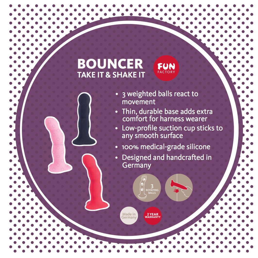 Det som verkligen sätter Bouncer Shake Red på kartan är de tre roterande kulorna inuti leksaken. Dessa kulor skapar en extra stimulering med varje rörelse och ger tysta men kraftfulla vibrationer som förstärker din njutning. Kulorna reagerar på även den mest subtila rörelsen och tillför en dynamisk dimension till varje användning. Den flexibla, sammetstexturerade ytan i 100% medicinskt silikon gör att du enkelt kan nå de mest känsliga områdena och få en fyllande känsla.