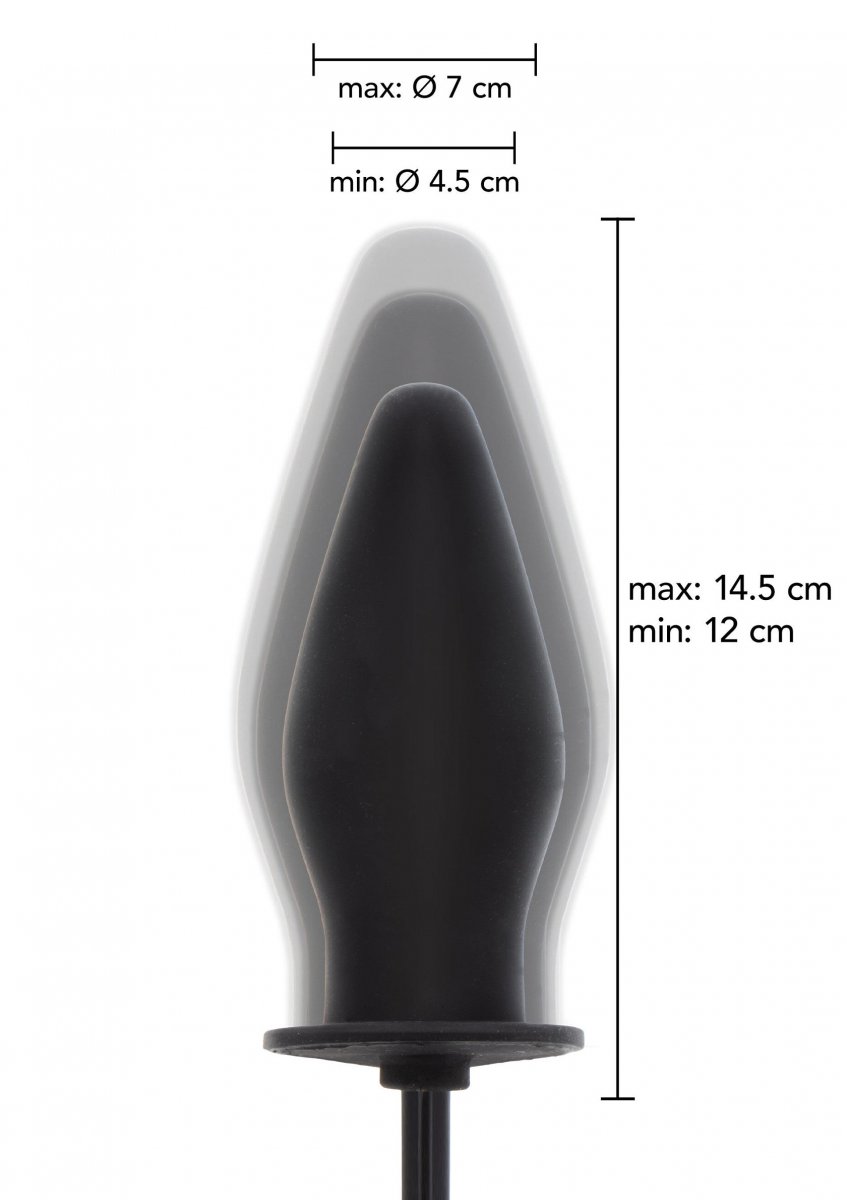 Överskrid aldrig den rekommenderade maximala uppblåsningsgraden. Att blåsa upp pluggen för mycket kan skada både dig och produkten. Använd alltid rikligt med vattenbaserat glidmedel och undvik kontakt med vassa föremål. Lyssna på din kropp – det är där den verkliga njutningen bor.