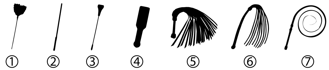 Det finns lite olika sorters piskor man kan använda och design och material varierar mycket. Men ofta kan man dela upp piskorna i lite olika typer.