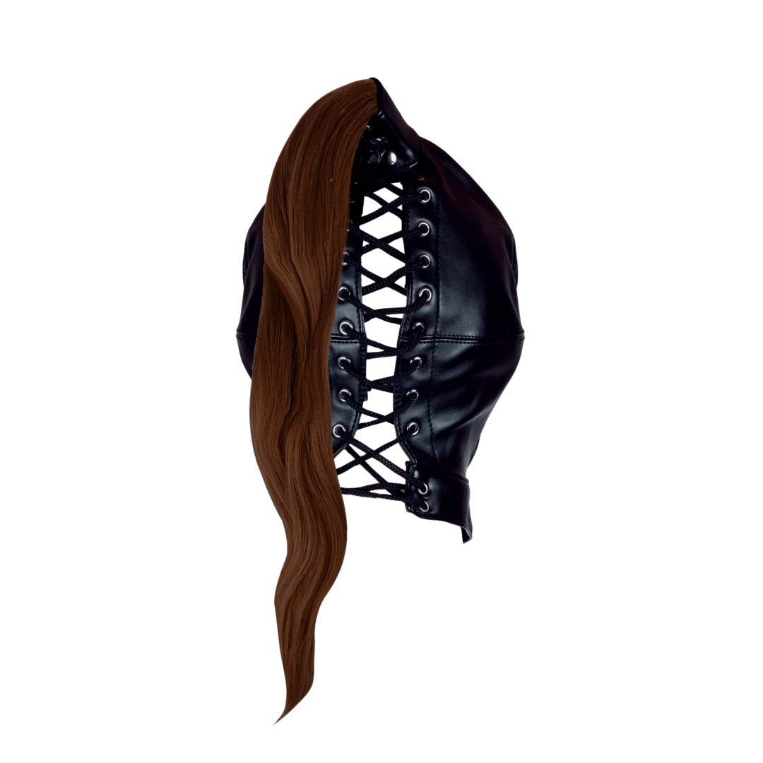 Den långa bruna hästsvansen ger inte bara en sexig look – den signalerar också underkastelse, kontroll och elegans. Varje svaj i håret förstärker intrycket av en rollfigur som är både kraftfull och fullständigt överlämnad. Perfekt för pony play, dominanslekar eller bara för att klä upp sig till någon du inte visste att du ville vara. Håret sitter säkert fast i maskens topp och ramar in varje lekfull stund med en dragning åt det dekadenta.