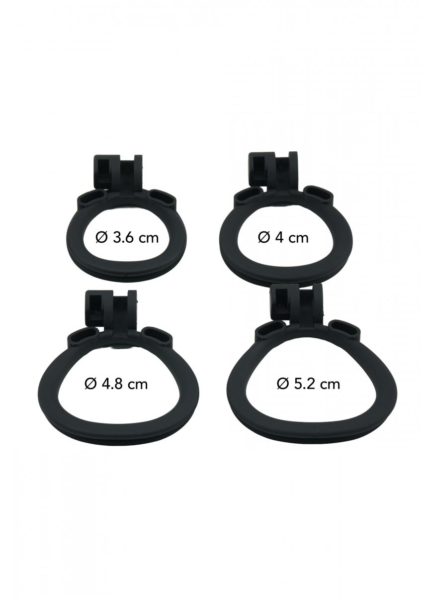 Med fyra olika storlekar på medföljande pungringar kan du hitta en passform som känns skräddarsydd för just dig. Detta säkerställer inte bara komfort utan också att buren sitter säkert och effektivt. Kombinationen av precision och flexibilitet gör att du kan bära den under längre perioder utan att kompromissa med känslan. Resultatet? En konstant, intensiv kontroll som inte ger dig någon chans att fly.