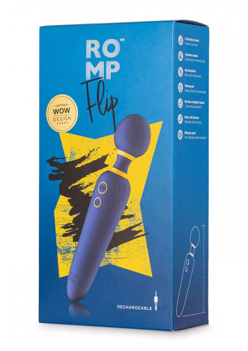 Även om ROMP Flip är mindre än andra wands så är denna vibratorn minst lika stark. Med dess flexibla huvud kan du stimulera dina erogena zoner eller njuta av avkopplande massage som kommer åt alla dina punkter. ROMP Flip är den perfekta massören för varje humör, punkt eller position. ROMP Flip är 23 cm lång.