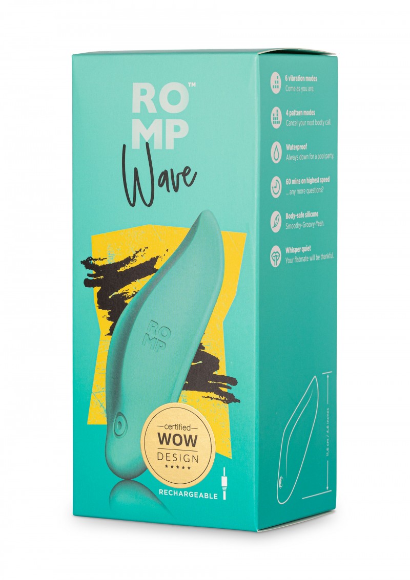ROMP Wave är en vibrator med kraftfulla vibrationer förpackat i ett litet skal vilket gör den väldigt diskret så att du enkelt kan smyga med den överallt. Den har en vacker form som gör att du inte behöver gömma den i en låda. Denna vibrator är lätt för ögat och har en vacker fjärilsform som du kan ta med dig vart som helst, även i vattnet då den är helt vattentät. Vibratorn är 11,5 cm lång.