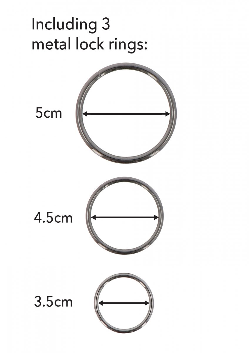 Sexy String Strap-On kommer med tre olika lock-ringar i storlekarna 3,5 cm, 4,5 cm och 5 cm, vilket gör det enkelt att anpassa efter vilken dildo eller dong du vill använda. Oavsett om du föredrar smal och exakt eller stor och fyllig, finns det en ring som passar. Alla ringar är utbytbara – för maximal frihet och variation i sängen.