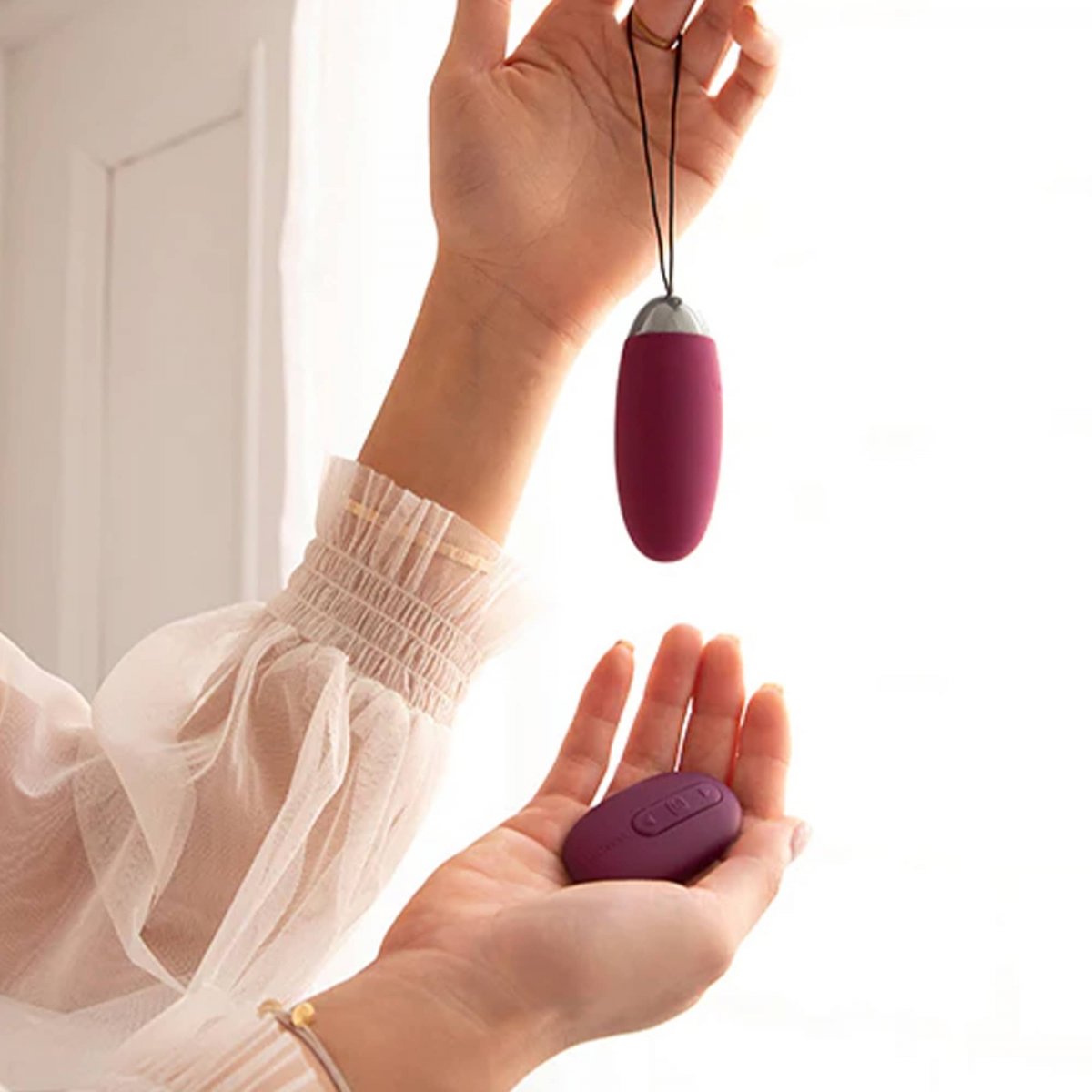 Smörj in ditt vibroägg med vattenbaserat glidmedel, låt den glida in i dig och njut exakt vart du vill. Den silkeslena ytan är mjuk som sammet mot huden, tack vare det högkvalitativa och kroppssäkra silikon-materialet. Ägget är helt vattentätt, så du kan utan problem använda den i duschen, badet eller på stranden. Med den medföljande fjärrkontrollen styr du eller din partner bekvämt de fem olika tystgående vibrationshastigheterna i fem intenisteter. Svakom Elva erbjudet också Svakom Intelligent Mode, som imiterar vibrationerna av ett samlag ända till en häpnadsväckande orgasm. Du behöver inte oroa dig för att inte få ut vibratorn när du fört in den i vaginan tack vare snöret som sitter fast på leksaken. Vibratorn laddas smidigt upp med USB-kabeln du får med, och fjärrkontrollen drivs av ett CR2032 batteri, som även det medföljer. Leksakens totala längd inklusive snöret är 17,6 cm, själva vibratorn har en längd på 8 cm, och en diameter på 3,2 cm.